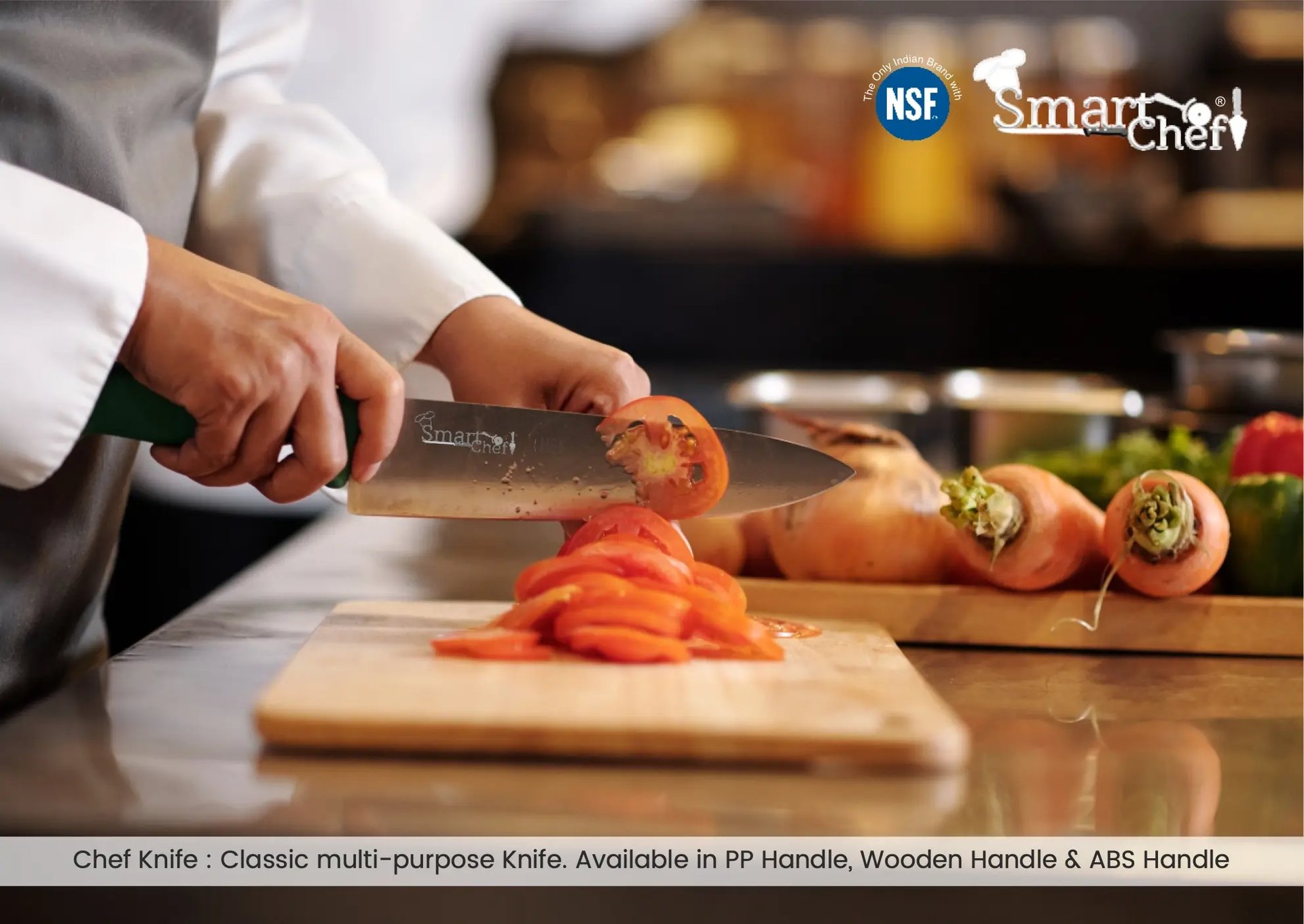 SmartChef India designs and supplies premium knives, chef knives, and high-quality kitchen tools across India. SmartChef India products are trusted by professional chefs, culinary students, and serious home cooks. your premium destination for top-tier kitchen tools and accessories designed to elevate your culinary skills. With our NSF-certified products, we provide chefs, restaurants, and home cooking enthusiasts with an extensive collection of premium knives, choppers, cleavers, cutters, lifters, turners, servers, scrapers, graters, mincers, specialized knives, bakery tools, pizza tools, and more.